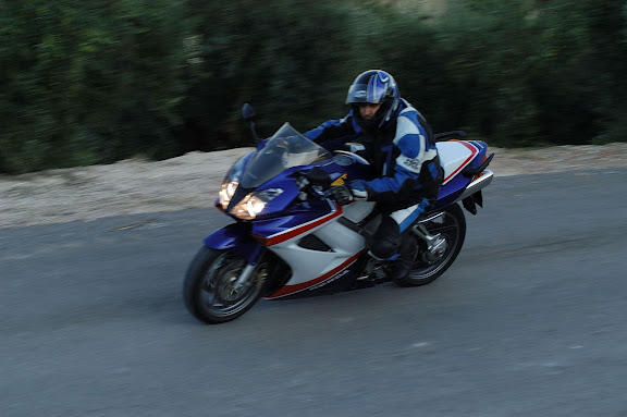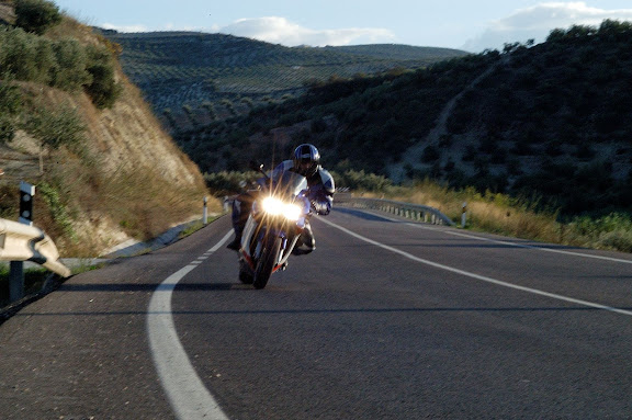 Celebro que te guste, pero fue dificil hacer la foto, y para encuadrarla como tu dices, que no entiendo de fotos, hubiese hecho falta una camara mas rapida, para dejar el dedo puesto... o un motero mas lento. Yo no se tumbar la moto si voy mas lento... no me sale.