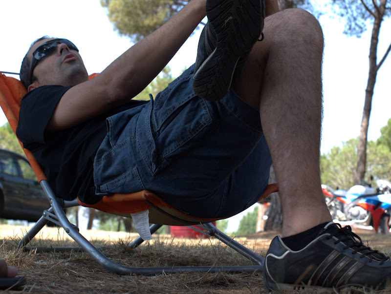 Y me sigue resultando curioso que un monton de gente se reuna en un pinar a dormir en el suelo, sin comodidades, sin intimidad y que vengan de lugares tan dispares como Asturias, Cantabria, Extremadura, Andorra, Madrid, Valencia, Castellon.... para compartir suelo y penurias, para ver una carrera a la que no le hacemos ni puto caso y solo se disfrute de la compañia. Un evento capaz de aglutinar a los elementos mas borrachos del club, con las nuevas generaciones. Que todos alabais a tochito, doc, straits, vigu por sus habilidades fotograficas, pero había una chiquitilla de 3 añitos, Claudia, haciendo fotos de todos muy pero que muy bien... Una cucada.... o mis enanos disfrutando, o los de Nito jugando con unos que pasaban por alli, o los de Doc, un poco mas mayorcitos tambien disfrutando de un dia diferente, o Guille, mi sobrino, o Ivan, que se han hacho mayores viendo u oyendo carreras de motos...