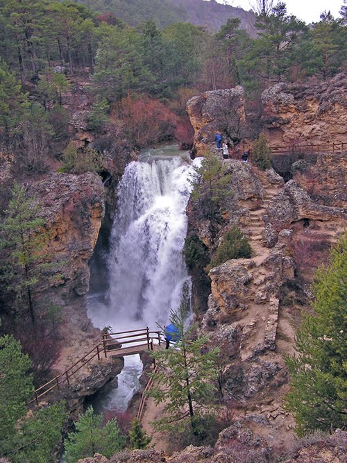 A la salida de Calomarde 3/4 Kms, hacia Albarracín, se encuentra junto a un aparcamiento para latas, a pie de ruta, La Cascada del Viejo Molino..., debe medir unos 18 m de altura y es más que recomendable visitar....